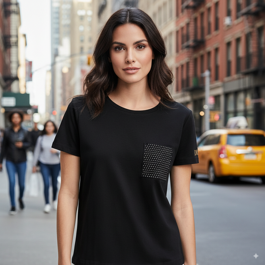 DKNY – Effortless Edge: Studded-Pocket Short-Sleeve Tee